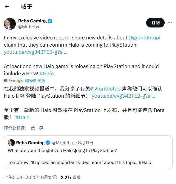 《光环》工作室已确认,将在今年晚些时候公布关于《光环》系列及其下一部作品的更多信息。RebsGaming也表示,至少有一款新的《光环》游戏将登陆PlayStation平台,并可能包括Beta版本。